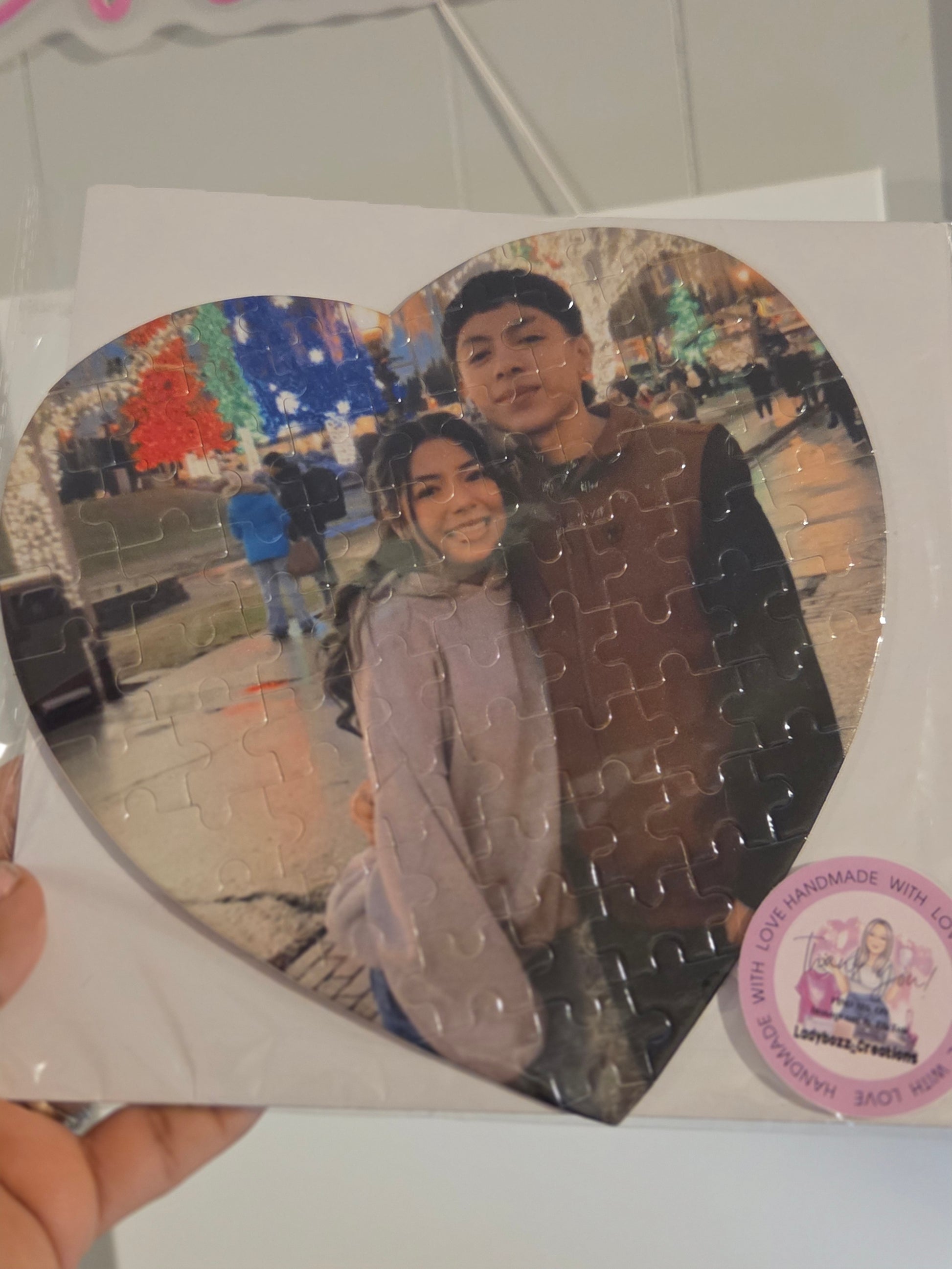 A sweet heart-shaped puzzle made with 75 pieces and your favorite photo. A meaningful 6.6 in keepsake perfect for couples, anniversaries, and Valentine’s Day ❤️, and meaningful connections—one piece at a time.